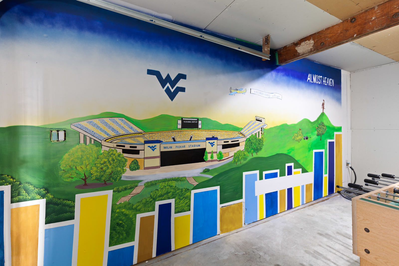Our newest property has been impeccably renovated and equipped with modern touches, yet still lets you know you’re in Mountaineer Country! From the custom painted mural in the garage, to the blue & gold touches throughout the living space, you’ll feel the Mountaineer spirit and love!