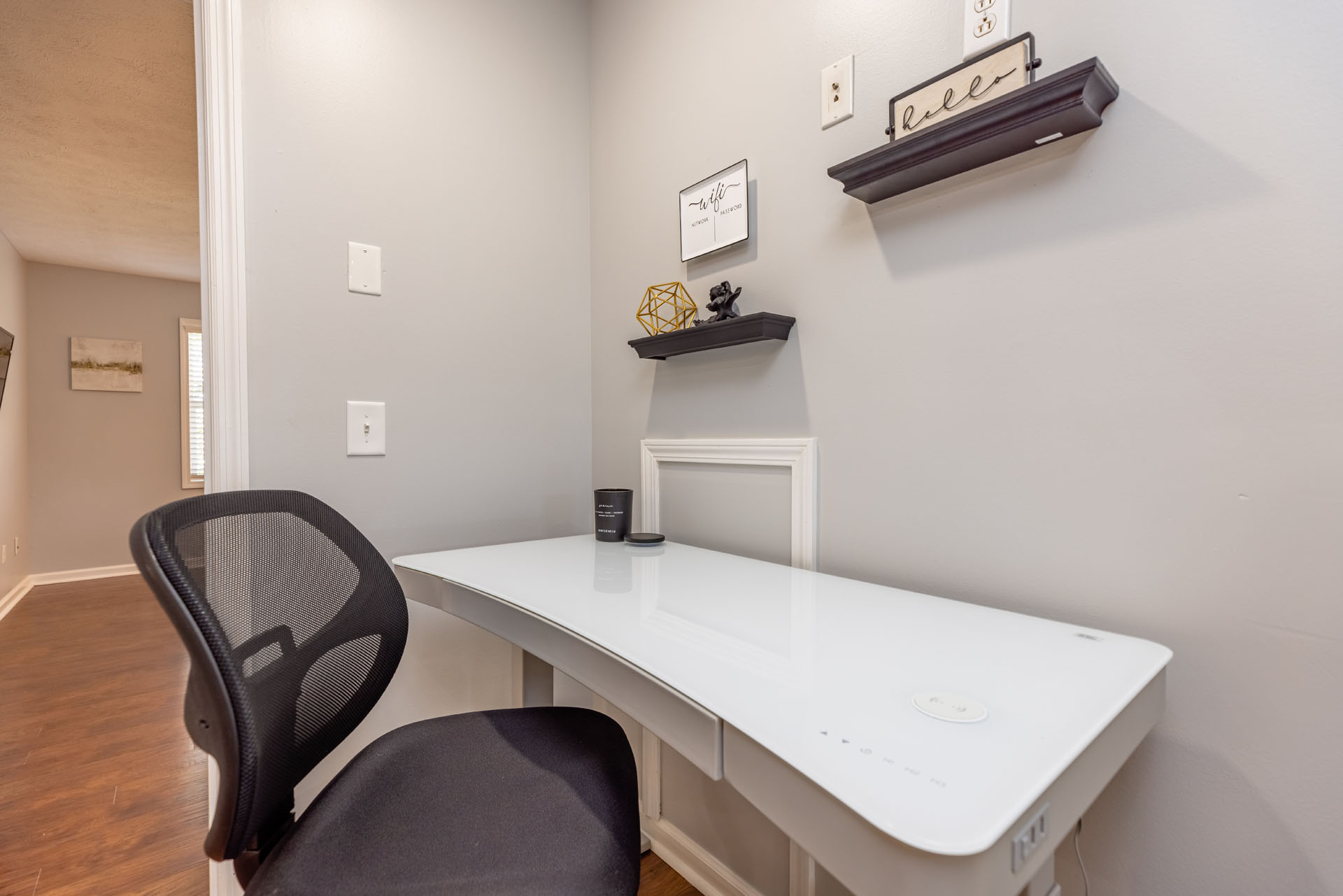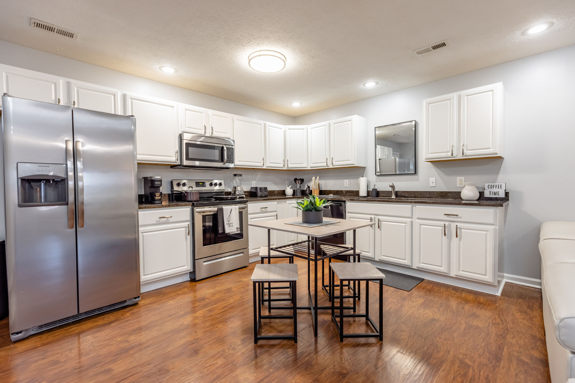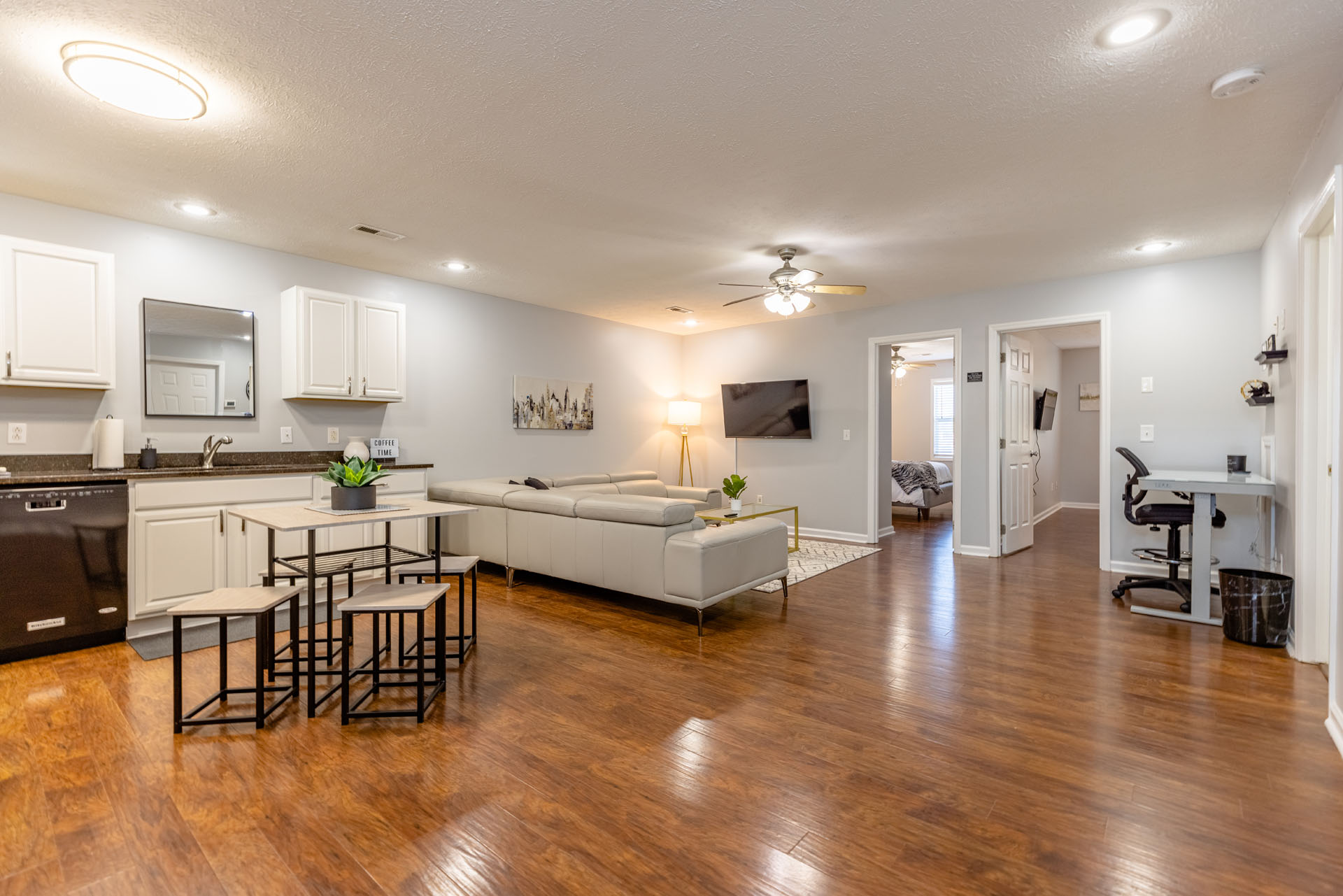 For our business travelers, or just those who like a space to check emails or shop online, we include a modern, adjustable desk to ensure a comfortable and productive workspace. Large, modern sectional sofa and smart TV in the living room create a comfortable place to kick back after a day at the game or checking out all the local flair in the area. No matter what brings you to Morgantown, this space will welcome you home at the end of the day.