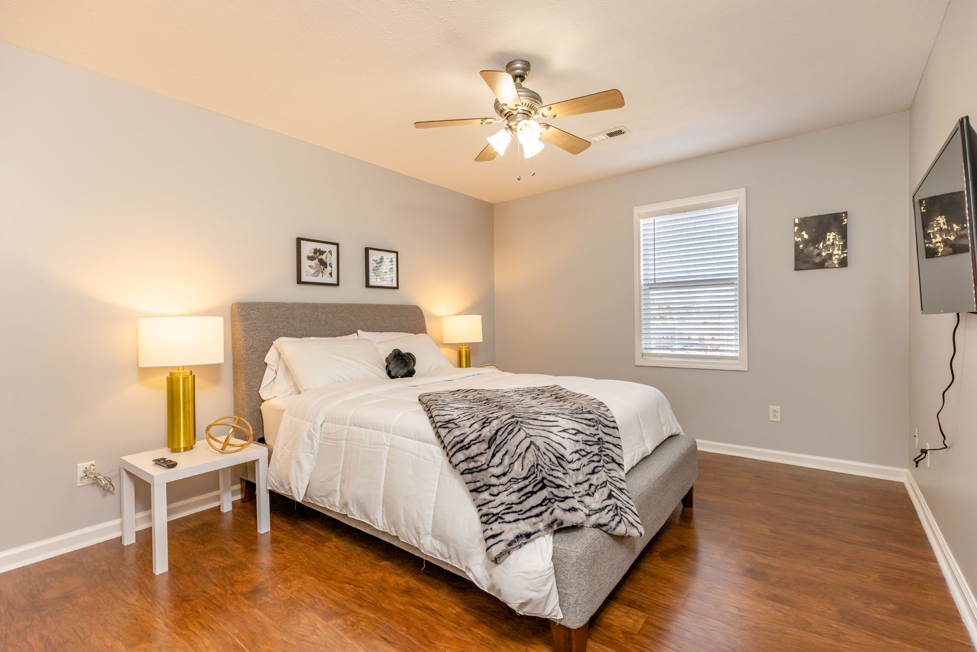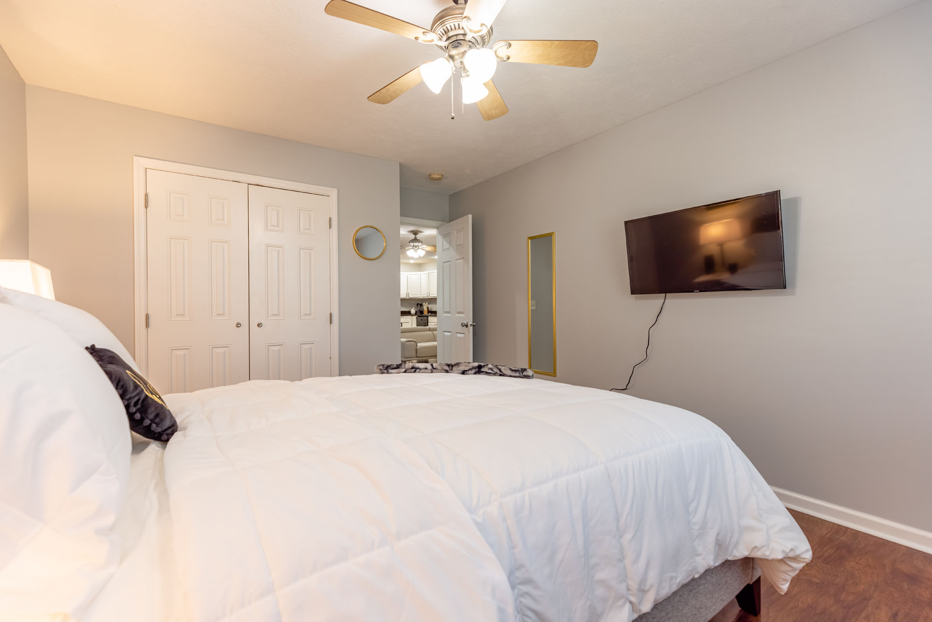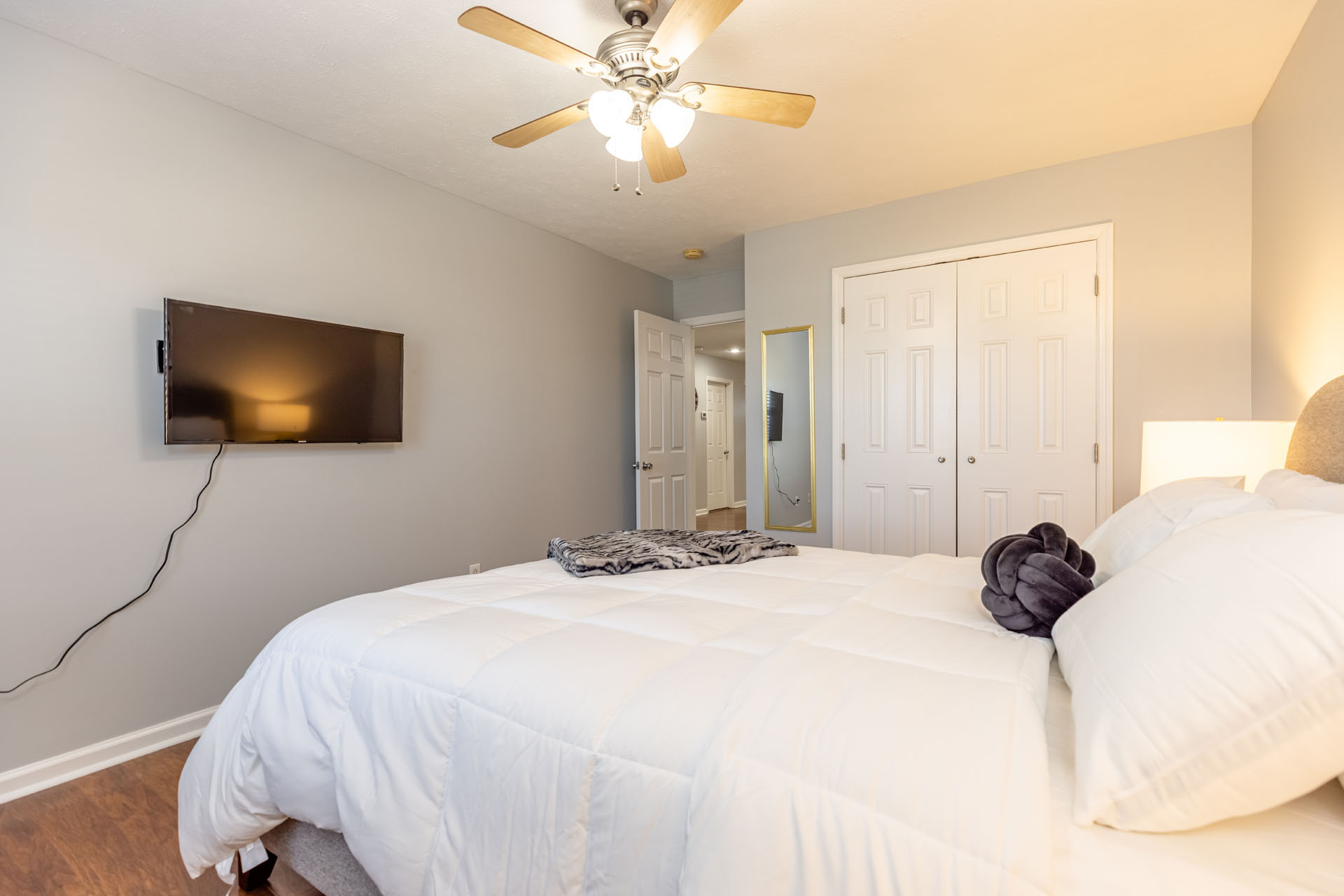 This modern-meets-cozy 2-bedroom apartment evokes a cool city vibe in the heart of Morgantown, WV. Country Roads may lead you here, but you can still get a taste of sleek, city style in this modern apartment. This 2-bedroom, 1 full-bathroom space has wood flooring, central A/C and heat throughout and features modern styling in fresh white and grey interior, Full kitchen with stainless appliances and granite countertops. Bedrooms are spacious with queen-sized beds, large closets, ceiling fans and smart TV’s in each.